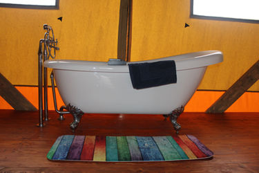 Indulge in luxury with the opulent roll-top bath, providing a serene escape for moments of relaxation and rejuvenation.