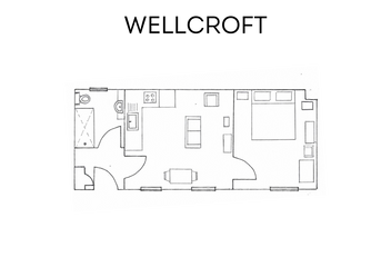 The Wellcroft apartment boasts a well-appointed interior comprising a comfortable double bedroom, a kitchen/living room area, a welcoming hall and a convenient bathroom complete with a bath and shower. Equipped with essential amenities such as an electric oven, hob, microwave and fridge/freezer, the kitchen ensures your stay is hassle-free. Unwind in the inviting living room furnished with a dining table, sofa, armchair and television.